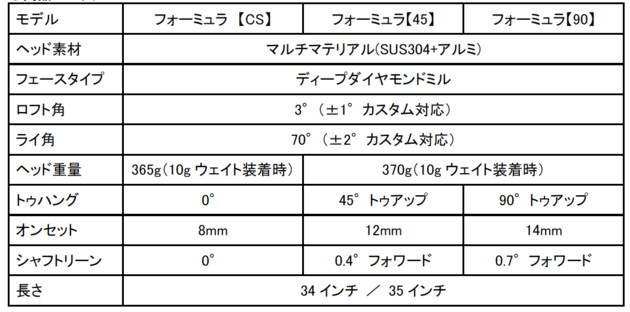 トルクを最小限に抑えることでパッティングストロークの安定性と再現性が向上する センターシャフトの位置を調整し、幅広いストロークスタイルに対応 〜あなたに最適なパターが「Formula」3モデルから見つけることができるでしょう〜